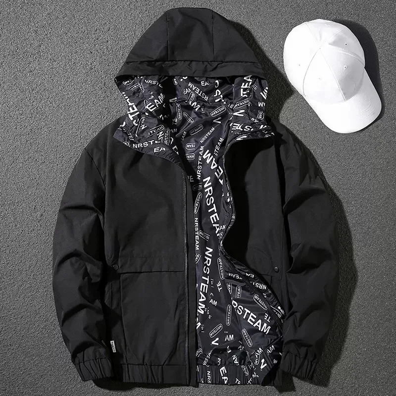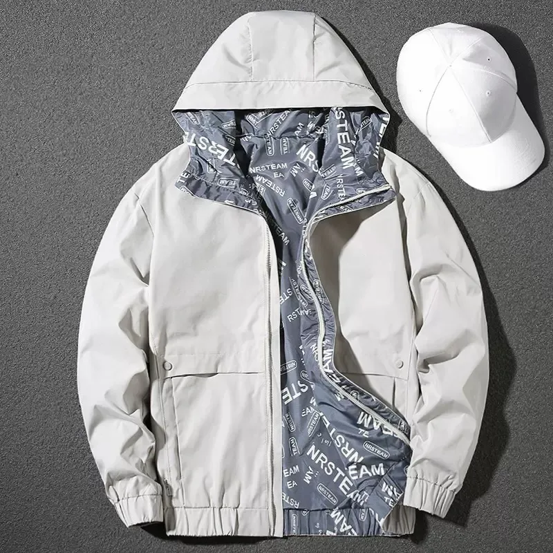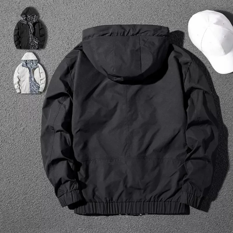 • Handsome reversible jacket men's autumn and winter trendy hooded slim jacket