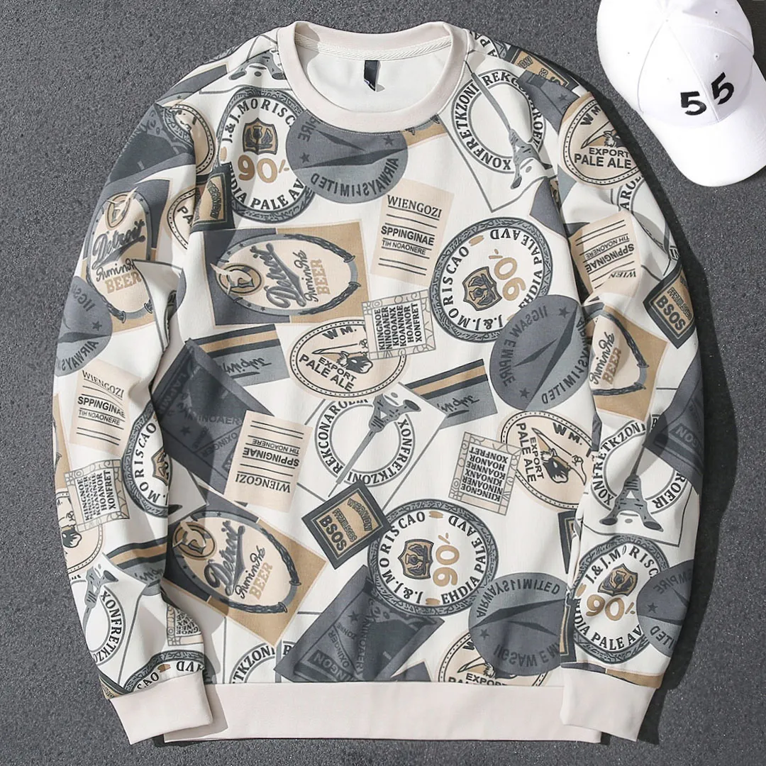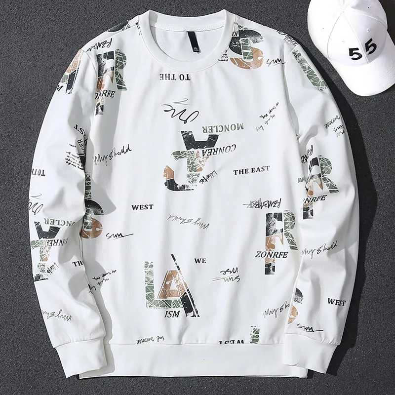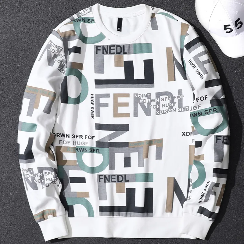 • Handsome Autumn Signature Printed Round Neck Sweater Men's Trendy Brand Korean Style Casual Pullover Bottoming Shirt Versatile Long Sleeve Top